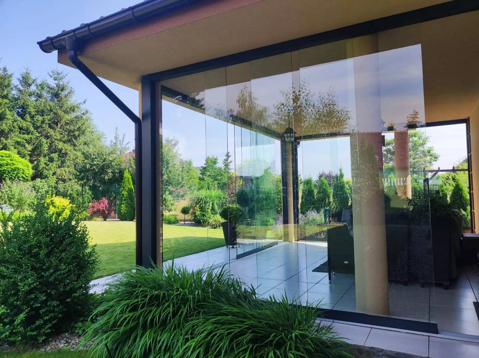 Uwaga: Przy zadaszeniu o długości 6,60 m i systemie szyb przesuwnych 6-torowym należy zamontować profile U, aby drzwi mogły prawidłowo łączyć się ze słupami.