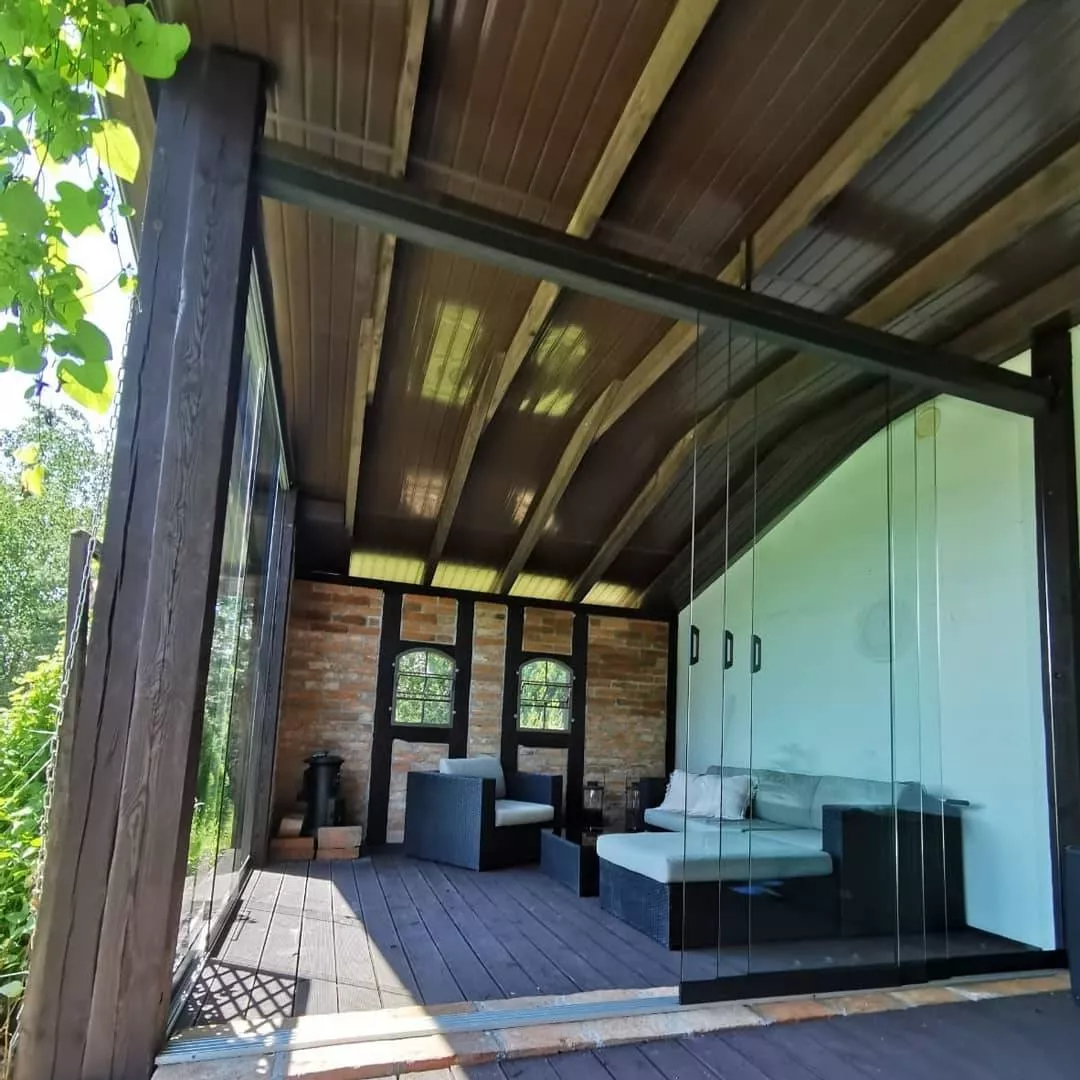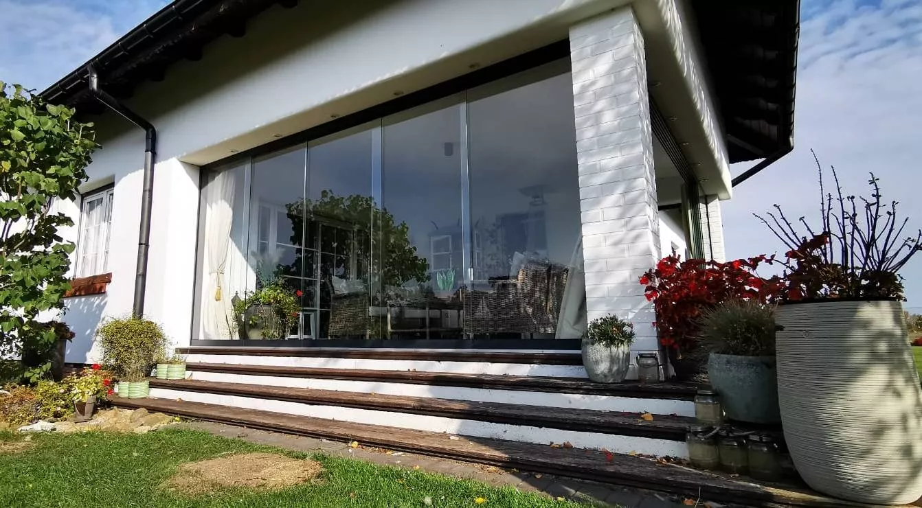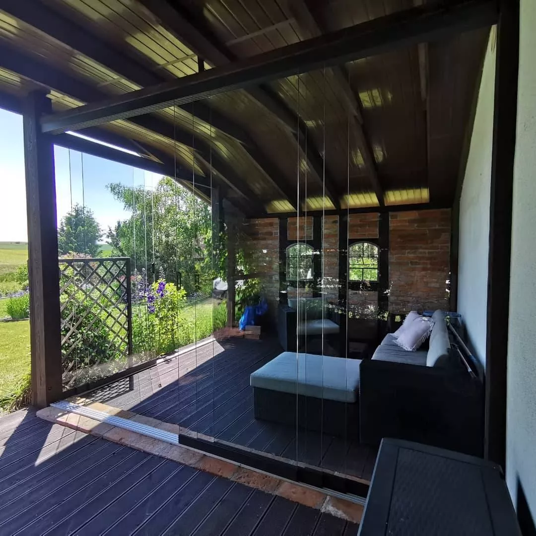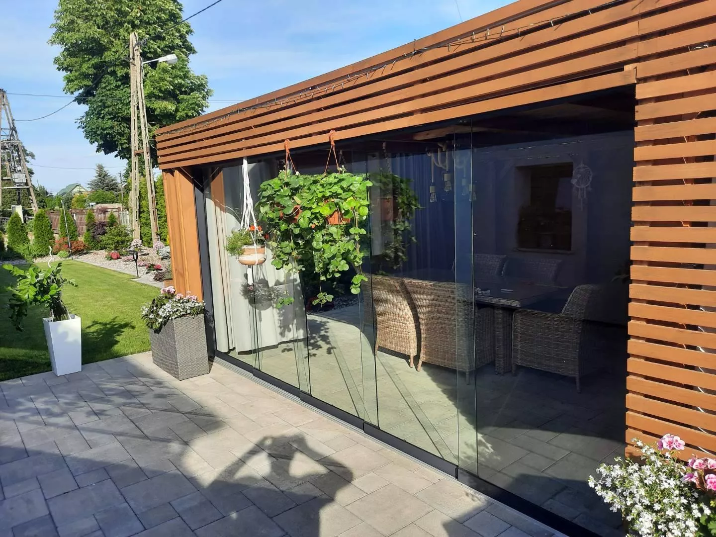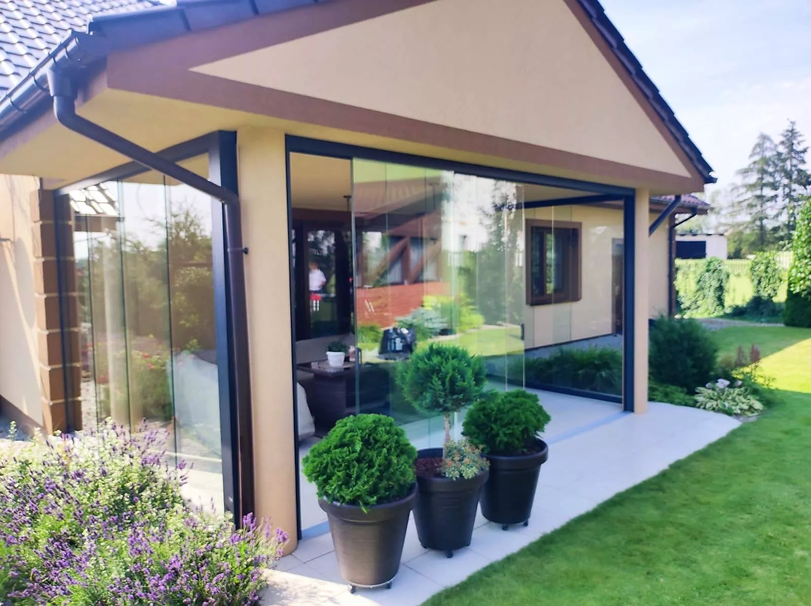 Przesuwne szklane panele można uzupełnić różnymi akcesoriami, takimi jak uchwyty, listwy pogodowe lub profile U.