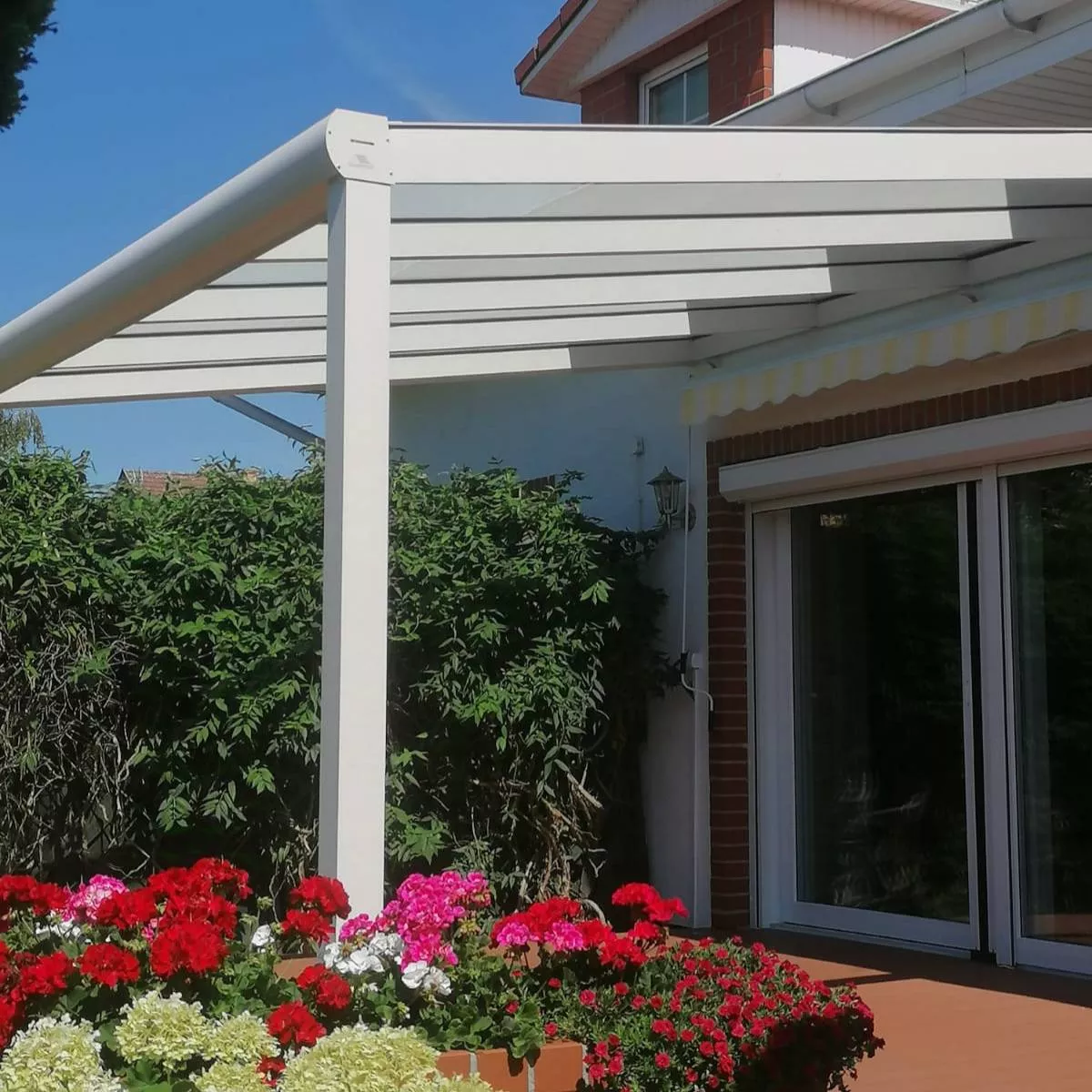 Nasze zadaszenia tarasowe są dostępne w szerokościach od 3,06 m z możliwością rozszerzenia o kolejne metry.