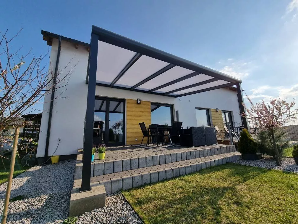 Konstrukcja zadaszenia wykonana jest z aluminium 6063-T6, które jest o 25% bardziej wytrzymałe w porównaniu do tradycyjnych materiałów. Aluminium charakteryzuje się wysoką odpornością na wilgoć, promieniowanie UV i wymaga minimalnej konserwacji.
