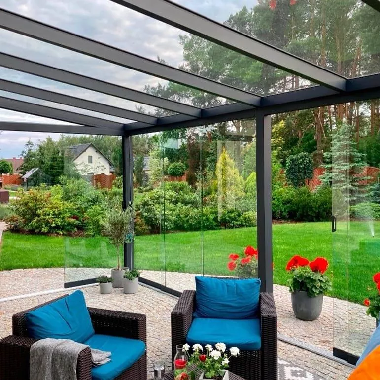 Zadaszenie wykonane jest z aluminium 6063-T6, które jest o 25% mocniejsze od standardowych materiałów, co zapewnia długowieczność i odporność na zmienne warunki atmosferyczne. Aluminium jest lekkie, odporne na wilgoć oraz promieniowanie UV, co sprawia, że jest łatwe w pielęgnacji.